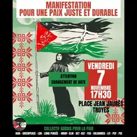Manif 4 octobre 10h30 à Troyes : soutien à la Palestine et à la flottille